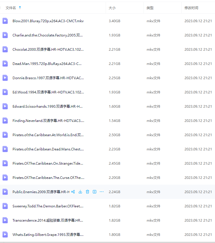 【极全网】约翰尼·德普(16部)云存储资源下载目录1个子文件夹0个文件4个