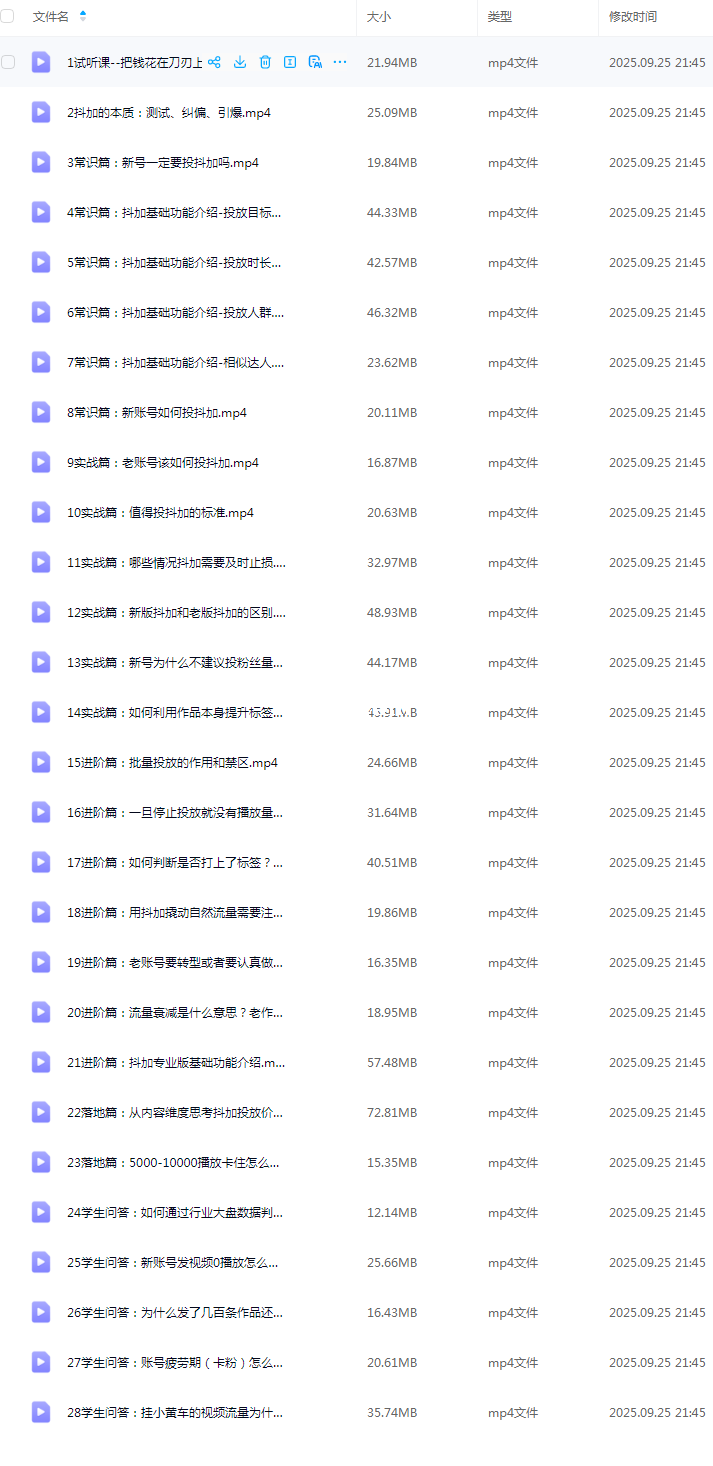 【极全网】抖加的投放与运营:常识篇+实战篇+进阶篇云存储资源下载目录1个子文件夹0个文件4个