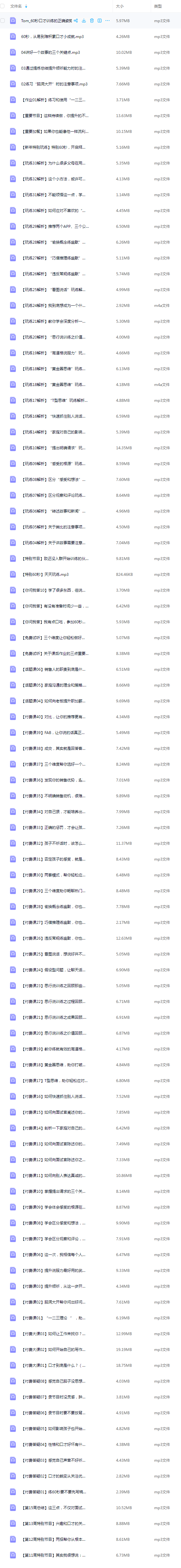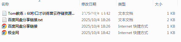 【极全网】Tom教练:60秒口才训练营云存储资源下载目录1个子文件夹0个文件4个
