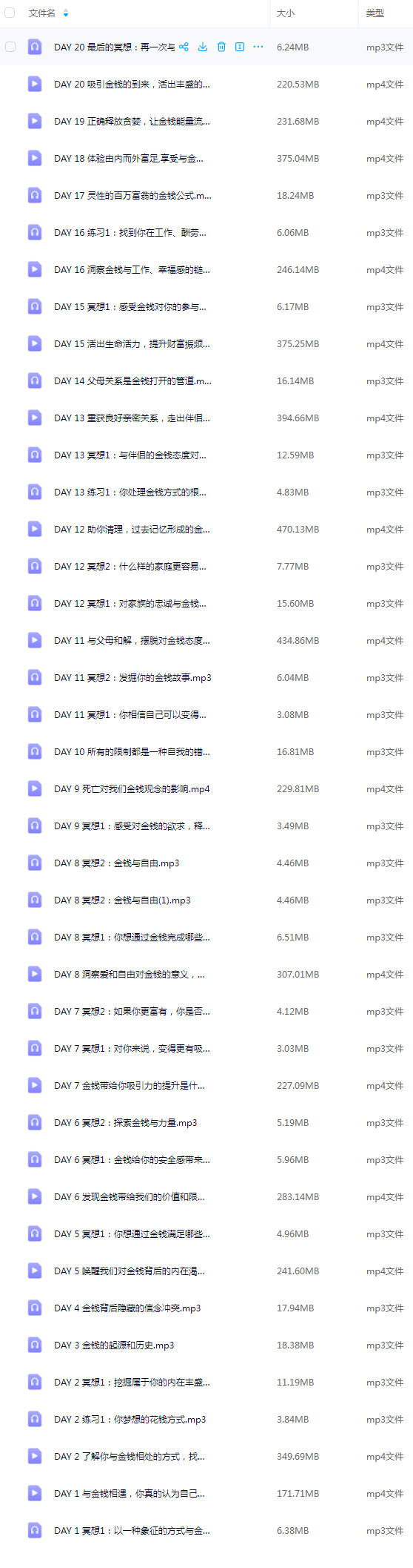 【极全网】破除你的限制性信念21节大咖金钱课云存储资源下载目录1个子文件夹0个文件4个
