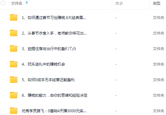 【极全网】6堂春节赚钱攻略,做这些事一周赚万元云存储资源下载目录1个子文件夹0个文件4个