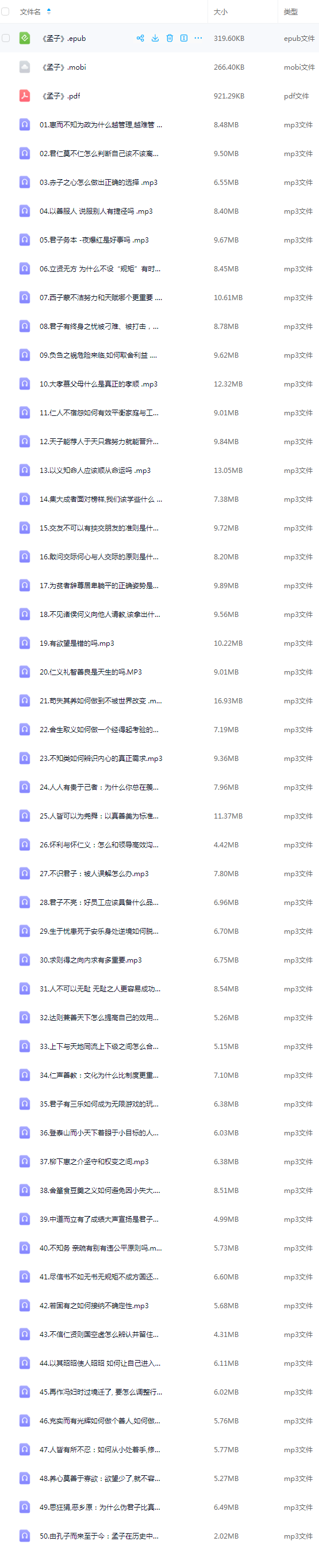 【极全网】樊登讲《孟子》第二季云存储资源下载目录1个子文件夹0个文件4个