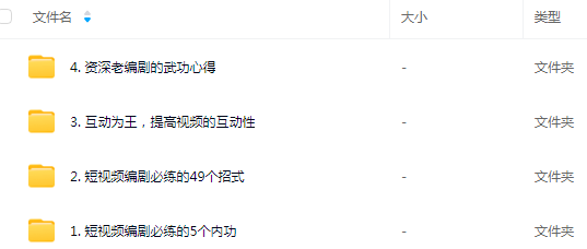 【极全网】0基础爆款喜剧短视频创作法则16讲(完结)云存储资源下载目录1个子文件夹0个文件4个