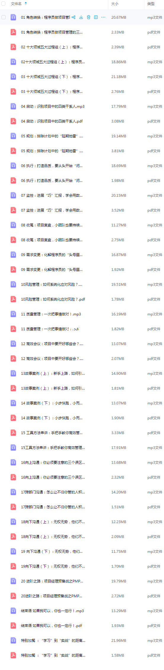 【极全网】项目管理实战20讲【完结】云存储资源下载目录1个子文件夹0个文件4个