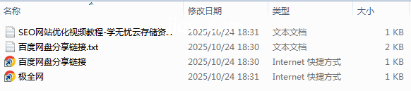 【极全网】SEO网站优化视频教程-学无忧云存储资源下载目录1个子文件夹0个文件4个