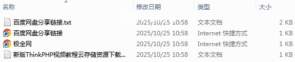 【极全网】新版ThinkPHP视频教程云存储资源下载目录1个子文件夹0个文件4个