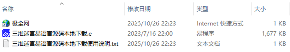 【极全网】三维迷宫易语言源码本地下载目录1个子文件夹0个文件3个