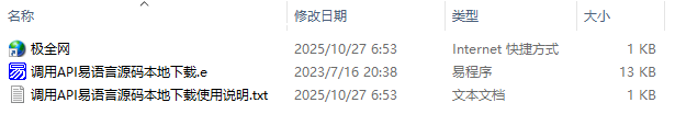 【极全网】调用API易语言源码本地下载目录1个子文件夹0个文件3个