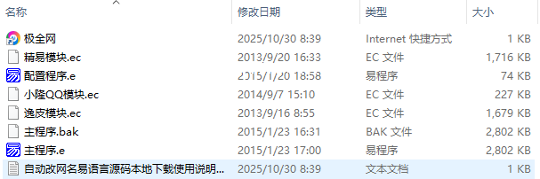 【极全网】自动改网名易语言源码本地下载目录1个子文件夹0个文件8个