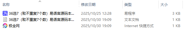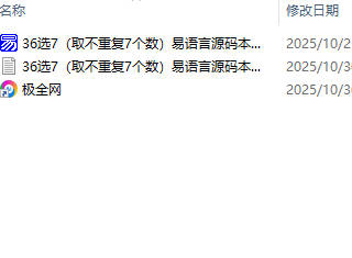 【极全网】36选7(取不重复7个数)易语言源码本地下载目录1个子文件夹0个文件3个