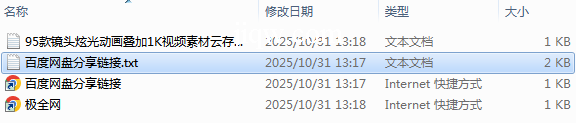 【极全网】95款镜头炫光动画叠加1K视频素材云存储资源下载目录1个子文件夹0个文件4个