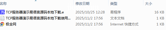 【极全网】TCP服务器演示易语言源码本地下载目录1个子文件夹0个文件3个