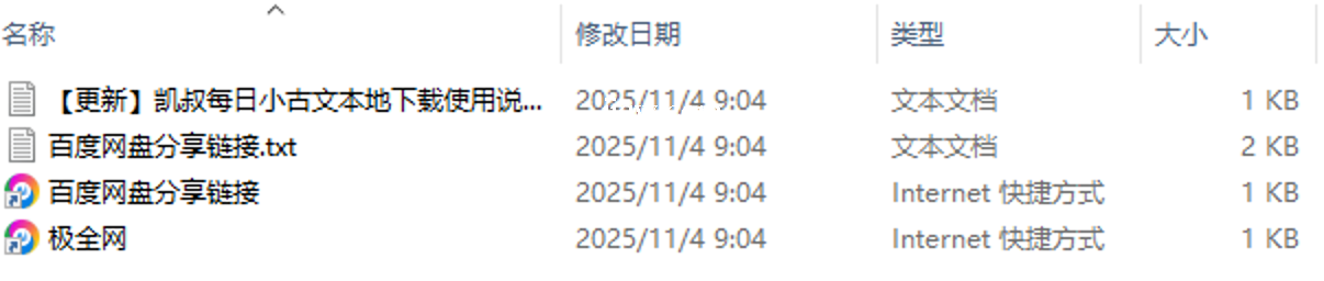 【极全网】【更新】凯叔每日小古文本地下载目录1个子文件夹0个文件4个