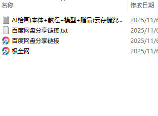 【极全网】AI绘画(本体+教程+模型+赠品)云存储资源下载目录1个子文件夹0个文件4个