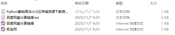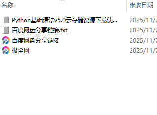 【极全网】Python基础语法v5.0云存储资源下载目录1个子文件夹0个文件4个