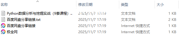 【极全网】Python数据分析与挖掘实战(9套课程)云存储资源下载目录1个子文件夹0个文件4个