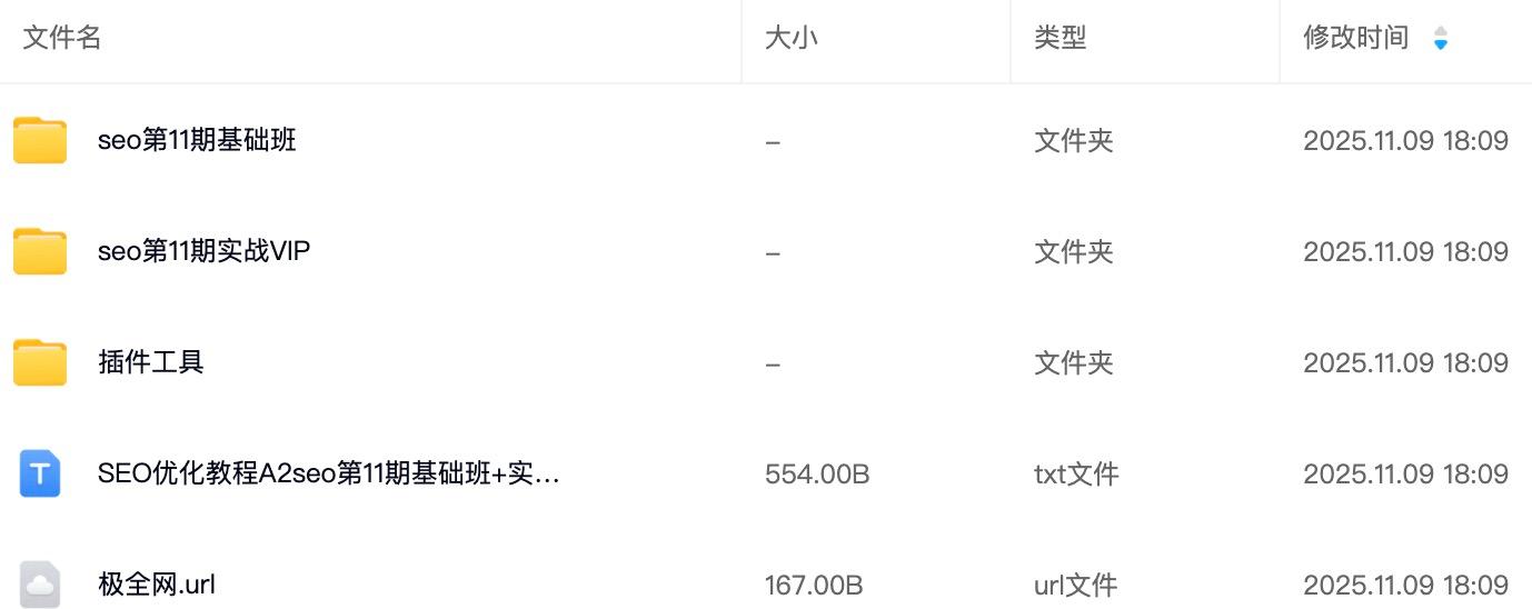 【极全网】SEO优化教程A2seo第11期基础班+实战VIP云存储资源下载目录1个子文件夹0个文件4个