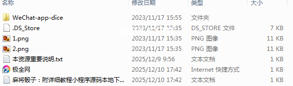 【极全网】麻将骰子:附详细教程小程序源码本地下载目录1个子文件夹1个文件6个