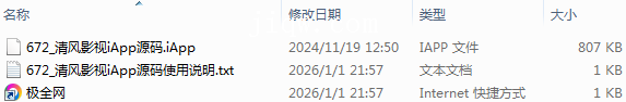 【极全网】672_清风影视iApp源码目录1个子文件夹0个文件3个