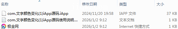 【极全网】com.文字颜色变化(1)iApp源码目录1个子文件夹0个文件3个