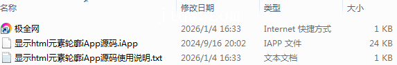 【极全网】显示html元素轮廓iApp源码目录1个子文件夹0个文件3个