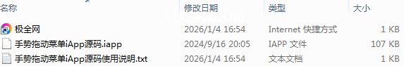 【极全网】手势拖动菜单iApp源码目录1个子文件夹0个文件3个