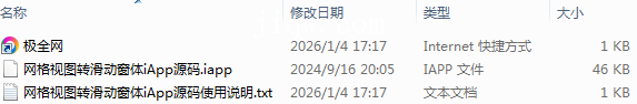 【极全网】网格视图转滑动窗体iApp源码目录1个子文件夹0个文件3个