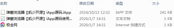 【极全网】弹窗浏览器【凯少开源】iApp源码目录1个子文件夹0个文件3个