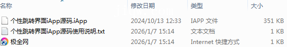 【极全网】个性跳转界面iApp源码目录1个子文件夹0个文件3个