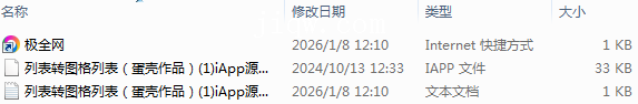 【极全网】列表转图格列表(蛋壳作品)(1)iApp源码目录1个子文件夹0个文件3个