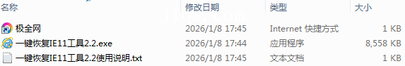 【极全网】一键恢复IE11工具2.2目录1个子文件夹0个文件3个