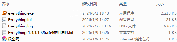 【极全网】Everything-1.4.1.1026.x64目录1个子文件夹0个文件4个