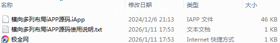 【极全网】横向多列布局iAPP源码目录1个子文件夹0个文件3个