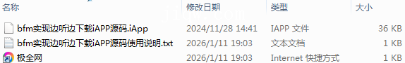 【极全网】bfm实现边听边下载iAPP源码目录1个子文件夹0个文件3个