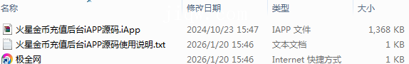 【极全网】火星金币充值后台iAPP源码目录1个子文件夹0个文件3个