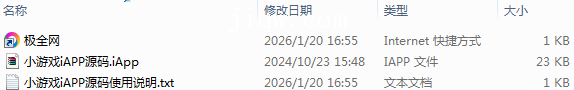 【极全网】小游戏iAPP源码目录1个子文件夹0个文件3个