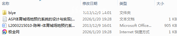 【极全网】ASP体育城场地预约系统的设计与实现(源代码+论文)-本地下载目录1个子文件夹1个文件3个