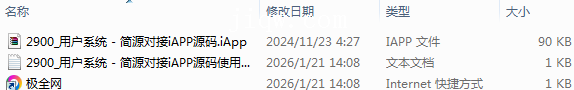 【极全网】2900_用户系统 - 简源对接iAPP源码目录1个子文件夹0个文件3个