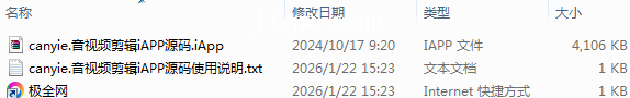【极全网】canyie.音视频剪辑iAPP源码目录1个子文件夹0个文件3个