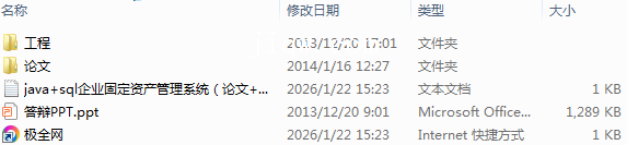 【极全网】java+sql企业固定资产管理系统(论文+系统+开题报告+任务书+中期考核报告+任务书+评语表+答辩PPT)-本地下载目录1个子文件夹2个文件3个
