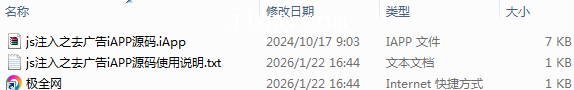【极全网】js注入之去广告iAPP源码目录1个子文件夹0个文件3个