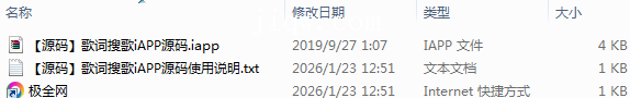 【极全网】【源码】歌词搜歌iAPP源码目录1个子文件夹0个文件3个