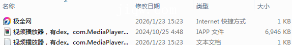 【极全网】视频播放器,有dex。com.MediaPlayeriAPP源码目录1个子文件夹0个文件3个
