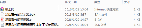 【极全网】易语言关闭显示器源码-本地下载目录1个子文件夹0个文件4个