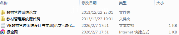 【极全网】VB教材管理系统设计与实现(论文+源代码+开题报告)-本地下载目录1个子文件夹2个文件2个