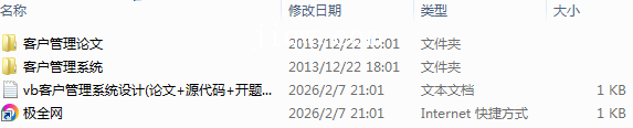 【极全网】vb客户管理系统设计(论文+源代码+开题报告+可行性报告+答辩PPT)-本地下载目录1个子文件夹2个文件2个