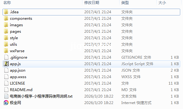 极全网】电商类小程序-小程序源码目录1个子文件夹7个文件8个