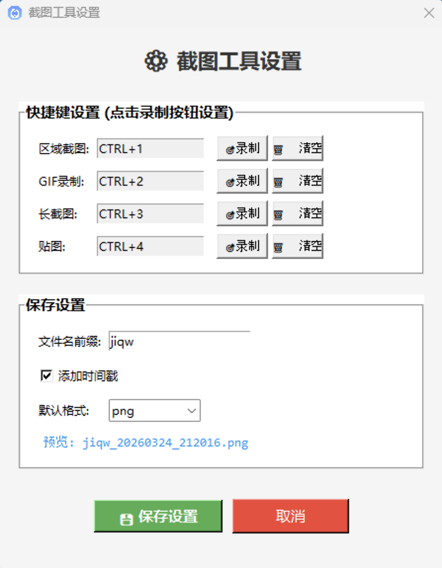 快捷键可通过 screenshot_config.json 配置文件自定义