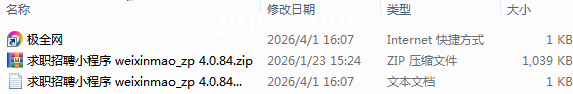 极全网】求职招聘小程序 weixinmao_zp 4.0.84目录1个子文件夹0个文件3个