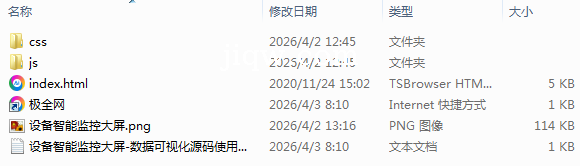 【极全网】设备智能监控大屏-数据可视化源码目录1个子文件夹2个文件4个